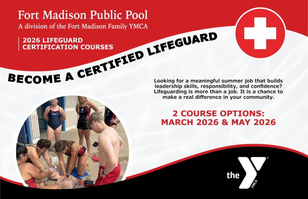 Blended Learning Certification Opportunities in Fort Madison Looking for a meaningful summer job that builds leadership skills, responsibility, and confidence? Lifeguarding is more than a job. It is a chance to make a real difference in your community. The Fort Madison YMCA is offering Lifeguarding Blended Learning certification courses in Spring and early Summer 2026, with a special incentive for those who commit to serving locally. Special Lifeguard Incentive All participants who commit to working the 2026 Summer Season at the Fort Madison Public Pool will receive a $25 discount on their certification cost. Who Can Register? To participate in…